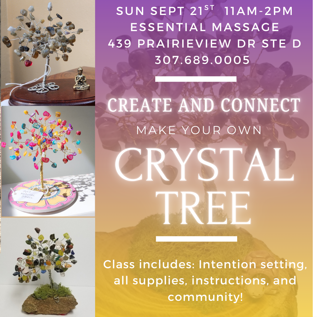 Come join in on a fun and relaxing class as you learn all about making crystal trees. We will begin with a intention setting as the summer comes to a close and fall brings a new season and a shift of energy. We will discuss the significance of crystal trees, then move into the FUN part... instruction and CREATING your own unique tree! At the end of the class you will have your tree to take home as well as the ability to experiment and create them whenever and however you want!